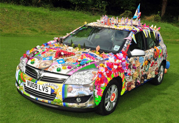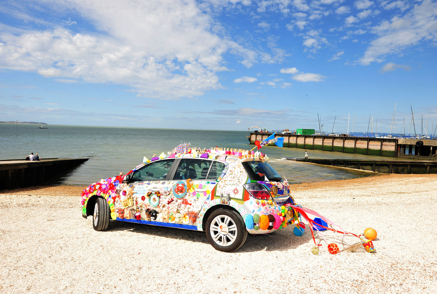 A kinetic collage, using the Vauxhall car as canvas, featuring weird and wonderful trinkets from across cool Britannia.Commissioned by Anna Lomax and Lauren Davies of Jiggery Pokery, tasked with customizing a new Vauxhall model. Completed in less than 24 hours, the project turned the car into the Great British Souvenir, using traditional seaside trinkets and immortalizing the best of British Holidays. A great project from Vauxhall in which the best of British illustration and design was celebrated.